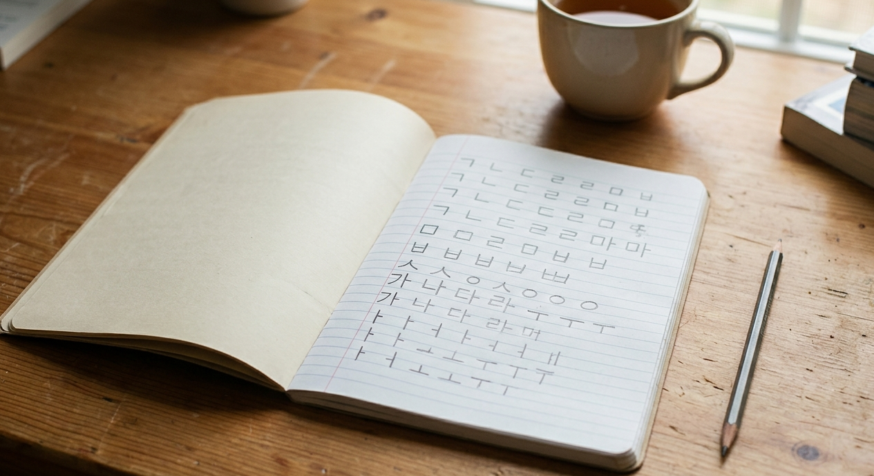 Korean uses its own alphabet called Hangul (한글). Unlike Chinese or Japanese, Hangul is phonetic — each symbol represents a sound, not a meaning.