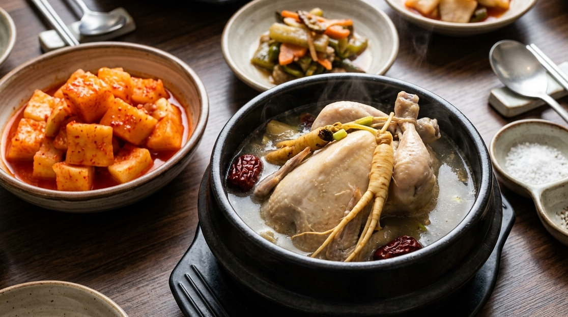 And one thing I never skip: well-fermented kkakdugi. The tangy, crunchy radish kimchi alongside samgyetang is essential. That contrast between the mild, rich soup and the sharp, sour kkakdugi makes everything taste even better.